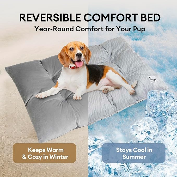 - Enhance Your Pet's Comfort: Treat your pet to the ultimate relaxation with the FUNNYFUZZY Pet Plush Dog Bed Mat. Crafted from soft plush, this reversible mat adapts to all seasons. The cozy plush side keeps them warm during colder months, while the cool faux linen side is ideal for warmer weather. Ideal for fur baby who love to unwind in comfort