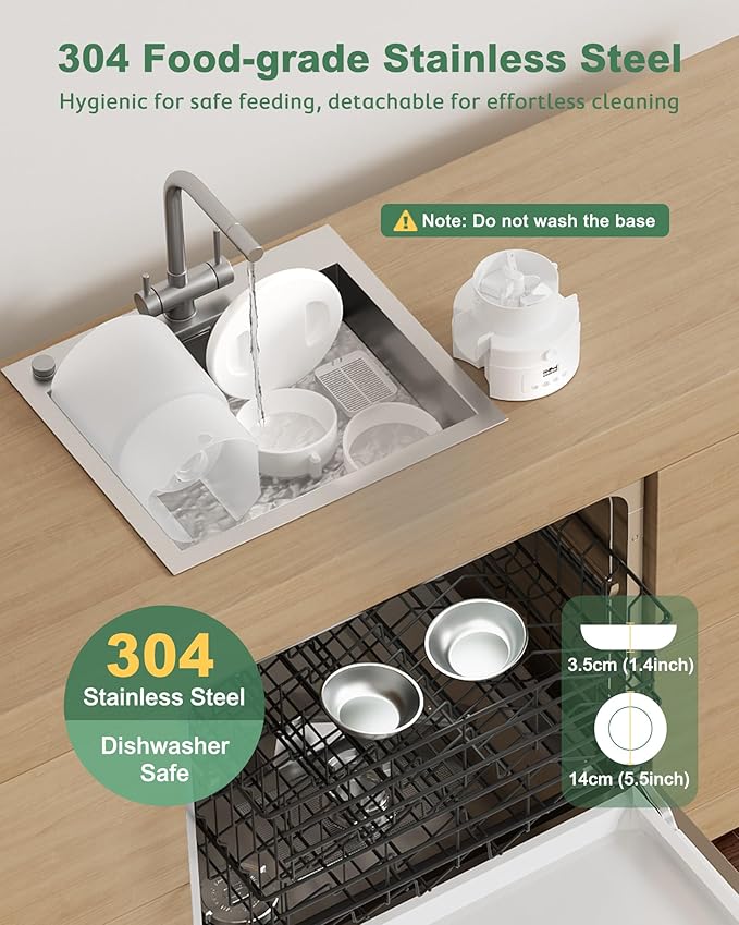 - 🐾 Safe & Hygienic Stainless Steel Bowl Cat Food Dispenser: Built with 304 grade stainless steel bowl for safe, hygienic feeding. this cat food dispenser keeps meals hygienic and easy to clean. The enclosed design with desiccant bag helps preserve kibble freshness and crispness over time, ensuring every meal is clean and nutritious.