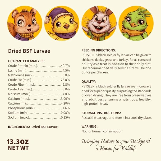 - Nutritious Treat: Packed with protein, these larvae make a healthy and delicious treat for layer hens, wild birds, and ducks.