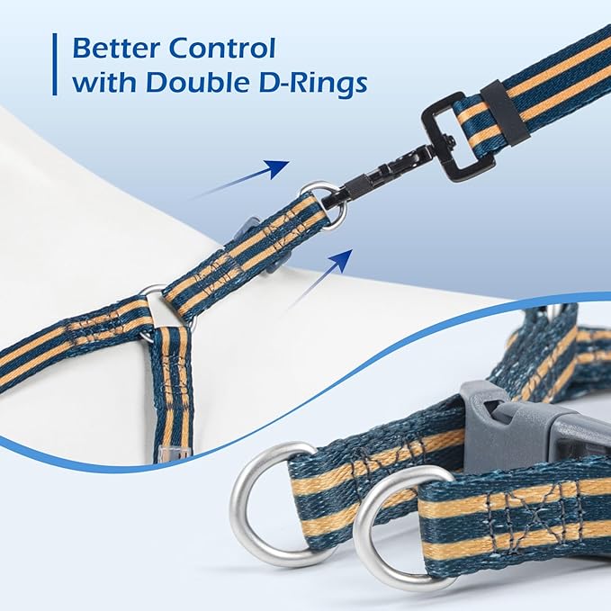- Double Safety Protection: Our escape proof harness features a combination of 2 sturdy D-rings and a reliable buckle to provide double protection against accidental escape. Keep your dog in a safe area.