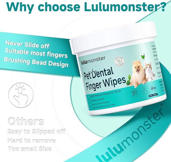 - 【Double-Action & Upgraded Design】Dog teeth cleaning wipes features brushing beads will easily offer deep clean, remove plaque and helps fight tartar buildup, the pearl side to polish and whiten teeth. Thumb assisted positioning design prevent the wipes slip off fingers.