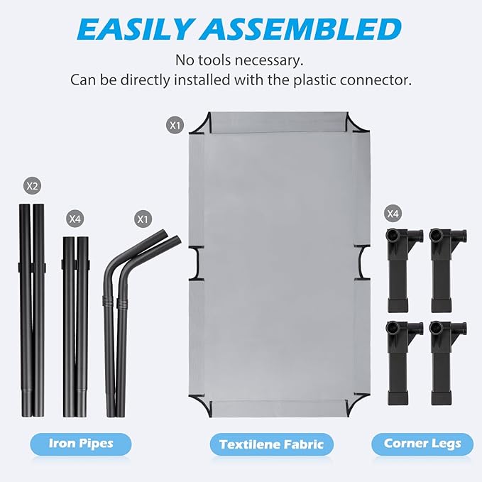 - Easy to Install: The cooling dog cot can be installed without the use of any tools, screws and can be installed directly with the plastic connector. It only takes a few minutes of your time, and presto. It's up and ready for your pet to enjoy in. Perfect for any indoor space or outdoor adventure.
