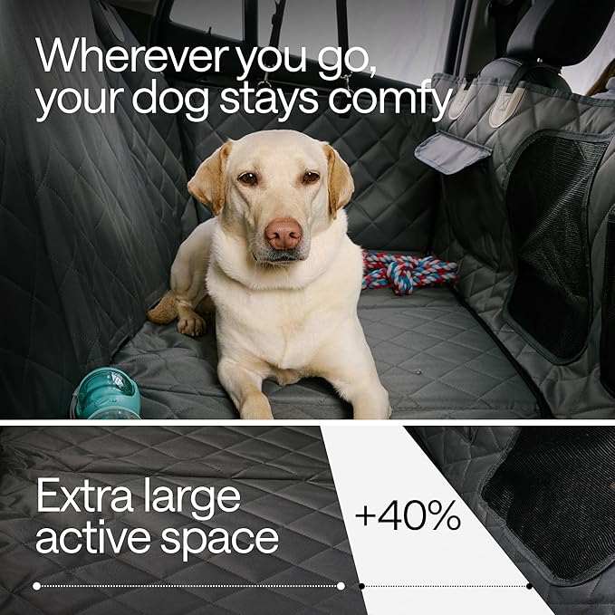 - Enhanced Safety & Protection: with anti-slip bottom and extended adjustable straps, this dog rear seat covers the entirety of back seat and doors, featuring a window for ventilation & 2 pockets to store your dogs accessories