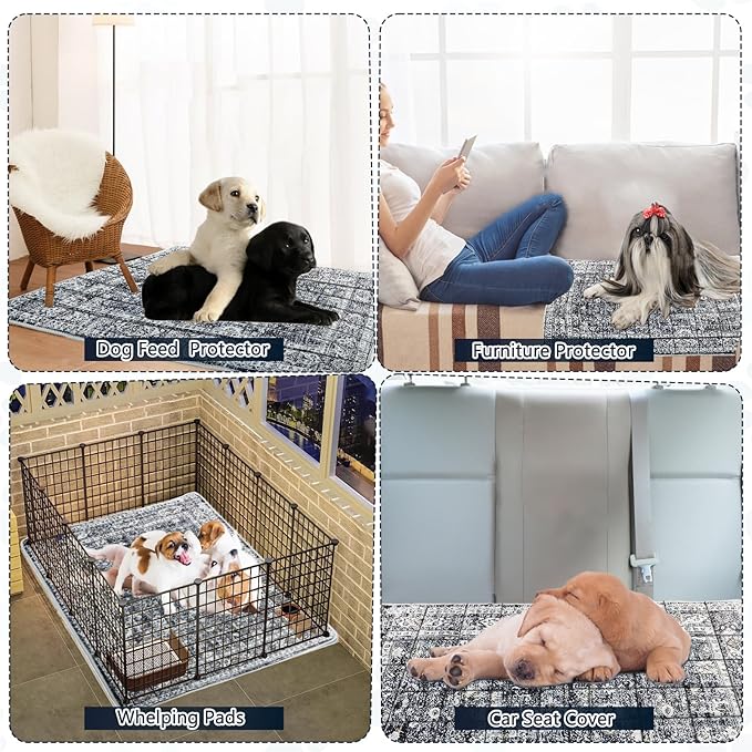 - 🐾 【Super Absorbent & Leakproof Protection】Constructed with 4 layers of super absorbent material, this pad offers excellent leakage protection with its waterproof TPU layer. It quickly absorbs urine and keeps floors, carpets, and furniture dry, providing a clean and odor-free environment for your dog.