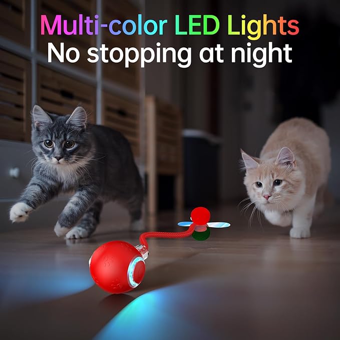 - 【Interesting Tail Accessory to Stimulate Hunting Instincts】The shiny tail accessory moves quickly together with this self - rolling ball cat toy, just like an agile mouse fleeing, instantly igniting the cats' hunting desires and making them go crazy for this cat rolling ball toy. The unique design of the tail adds an extra layer of excitement to the playtime.