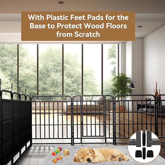 - 【Easy to Set Up & Multiple Combinations】The panels come with individual poles to connect them together, easy to set up or take it down in minutes, dog fence can do multiple combinations and configurations, dog playpen for the yard easily conforms to different shapes according to your garden or room, circle, polygon, irregular, etc