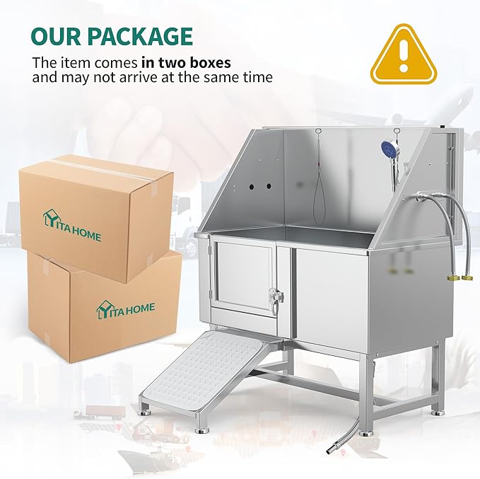 - Ideal Construction: YITAHOME professional dog bathtub's body boasts a 304 stainless steel with a load capacity of 330 lbs; It resists deformation and rust, ensuring easy cleaning and lasting durability; The fully welded one-piece design prevents water leakage and allows easy installation