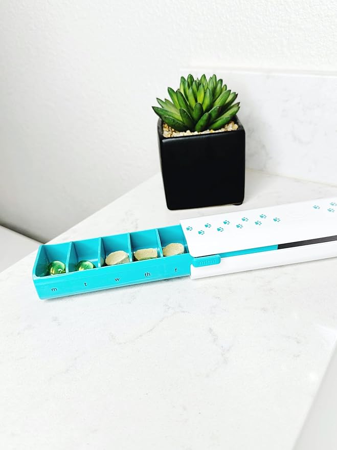 - Simplified Pet Health Management: Eliminate the clutter of multiple containers and swap for an aesthetic alternative. With seven compartments for organization, they store up to 5 large supplements or 10-12 small Rx pills per day. Note: these cases are not childproof.