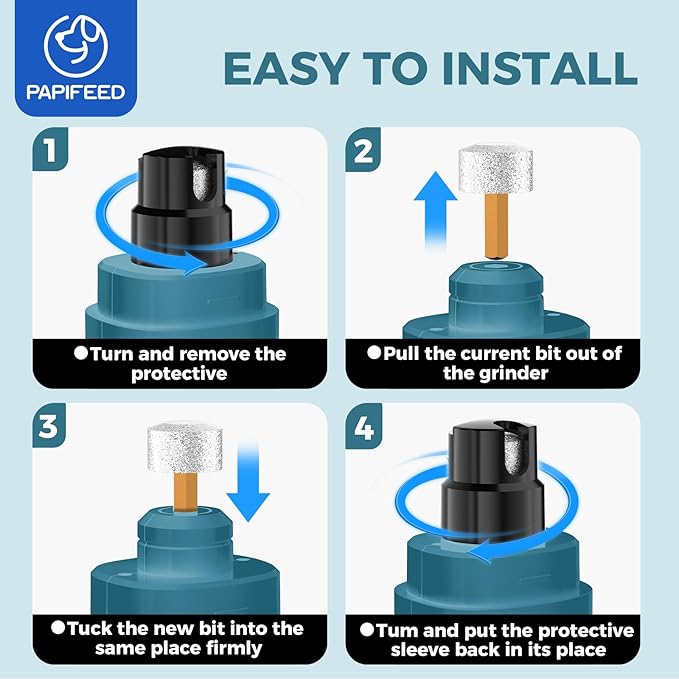 - 🐾【Whisper Quiet & Minimal Vibration】 PAPIFEED dog nail file adopts the latest silent technology and innovative powerful motor, running quietly with noise less than 40 dB. In addition, the dog nail trimmer adopts a design suitable for the pet's body structure, which can effectively reduce noise and vibration. Our quiet dog nail grinder runs quietly with minimal vibration, which helps to relieve pets' fear and anxiety during the manicure process.
