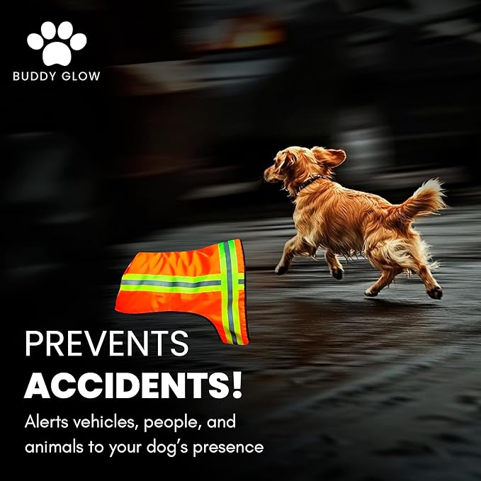 - High-Visibility Safety Design Features two-tone reflective tape strategically placed for 360° visibility, ensuring your dog is seen from all angles in both daylight and low-light conditions—especially around vehicles, bikes, and other moving objects.