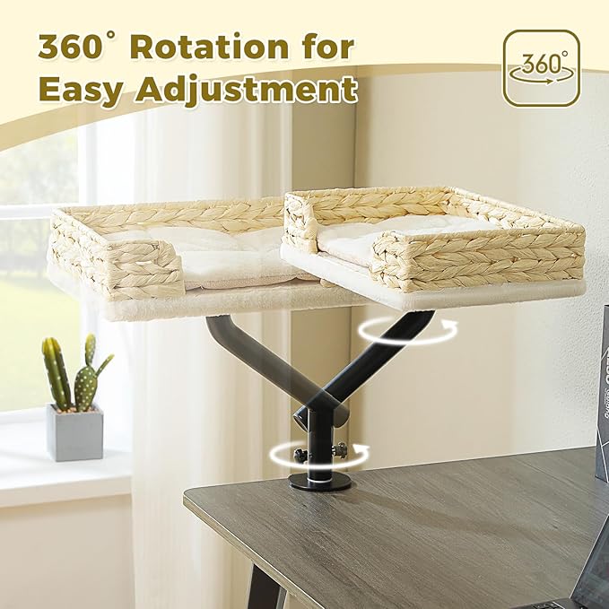 - 360° Rotating Support: Equipped with a sturdy, 360° rotating support bracket, this cat bed easily clips to any tabletop, allowing for flexible positioning and easy access for your feline friend.