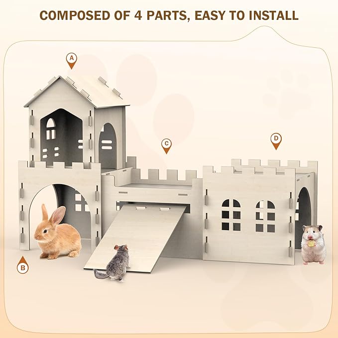- 【Extra-Large Rabbit Hideout for Natural Behaviors】:Designed with zoologists, this bunny house features a Dual-layer design (sunbathing deck + hidden nest) to satisfy rabbits' instinct to hide and observe. 30% more floor space than standard rabbit houses and hideouts for unrestricted movement.