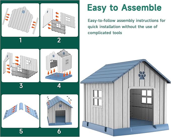- Superior PP Material: Crafted from high-quality PP material, this dog house is waterproof. This ensures a clean, dry, and safe living environment for your furry friends all year round.