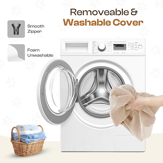 - Fully Washable Cover – Soft upholstery zip cover slips off for machine wash; breathable velvet tread grips paws even when wet.