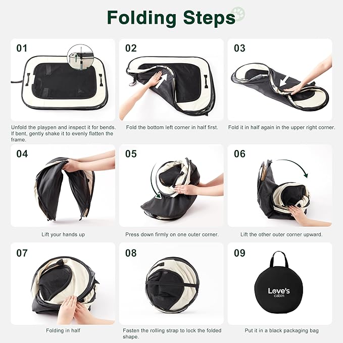 - Easy to Assemble and Store: The Portable Pet Play Pen comes along with a convenient carrying case that can easily store your playpen. Follow the instructions,you can assemble it in just 30 seconds. And it's also easy to fold back flat when not in use. Our lightweight portable pet playpen can be used indoors, outdoors, traveling, camping, etc.