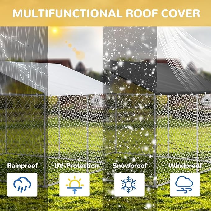 - More Space:The new and upgraded outdoor dog kennel has a lot of space(9.84'x9.84'x6.56').Can accommodate many large dogs at the same time.You don't have to worry about running out of space anymore
