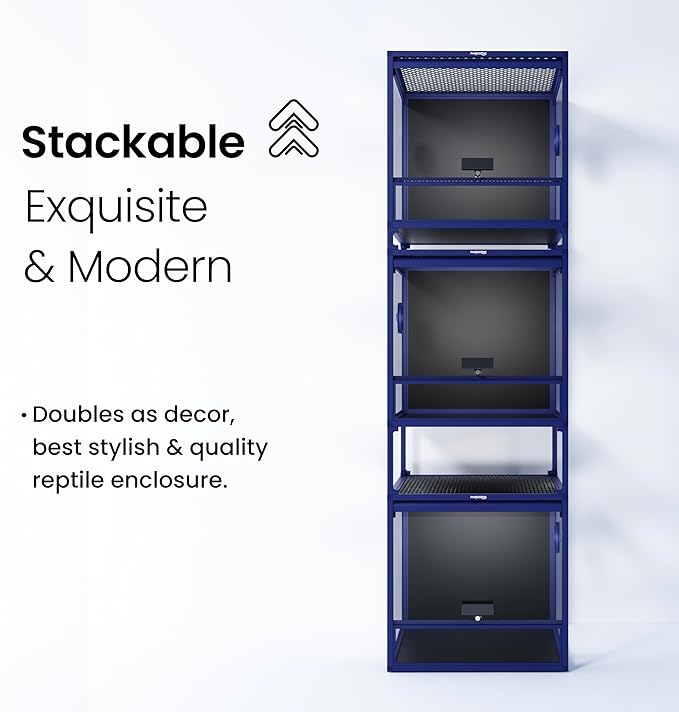 - 【Stackable】Our reptile enclosure is uniquely stackable and is available in five vibrant colors inspired by the beauty of reptiles. With our stackable feature, you could save plenty of space at home.