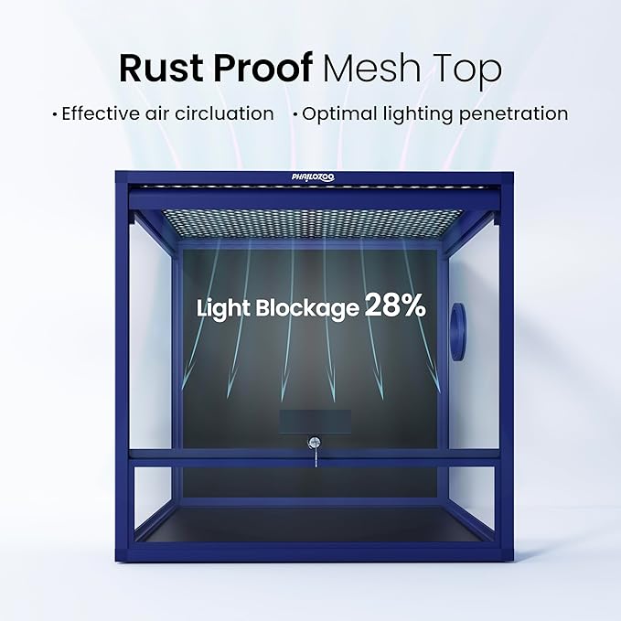 - 【Perfect for Beginners】Phailozoo 24-gallon reptile tank with single grommet measures 18'Lx18''Wx18''H. It only weighs 16.5 pounds. Easily assembled in six steps, perfect for first time reptile keepers.