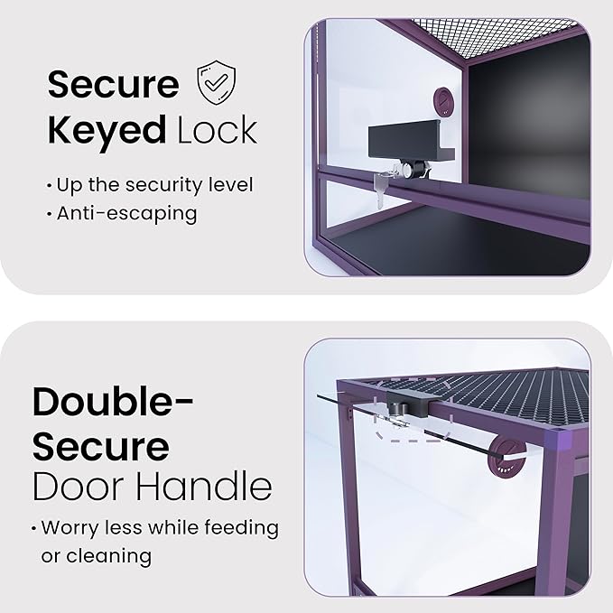- 【Lock Included】A tempered glass door with a safety keyed lock to prevent escape and accidental opening by others. NO GAPS FOR ESCAPING with fully closed structure. Rigid tempered glass doors for extra safety.