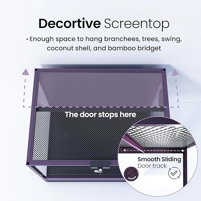 - 【Space Master】Easily flip and slide the door with the handle, tucking it away in the internal track to save space. The door handle can be fixed on the top front bar, to prevent you from being injured by the door falling during feeding and cleaning, and you don't have to worry about leaving fingerprints on the door.