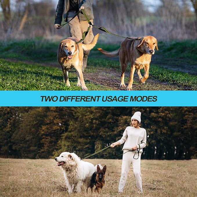 - 4 Comfortable Padded Handles: No more burned hands with 4 soft padded handles, which bring ultimate comfort and let you free up one hand while using this split leash for walking 2 dogs