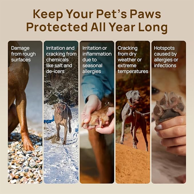 - Year-Round Protection for Your Pup's Paws – From hot summer pavement to winter salt and snow, our paw cream for dogs offers lasting relief and protection for paws in all seasons. Whether it's a brisk walk, rugged hike, or a camping adventure, your pup’s paws stay comfortable, hydrated