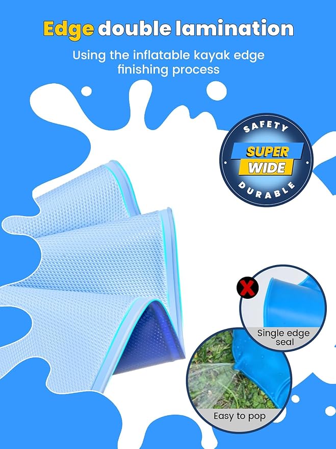 - NON-SLIP DESIGN: When playing with water on splash mat, 4 - 8 ages children are easy to fall and be injured. The non-slip texture is designed to increase grip and allow children to enjoy the water Sprinkler in the backyard while ensuring safety