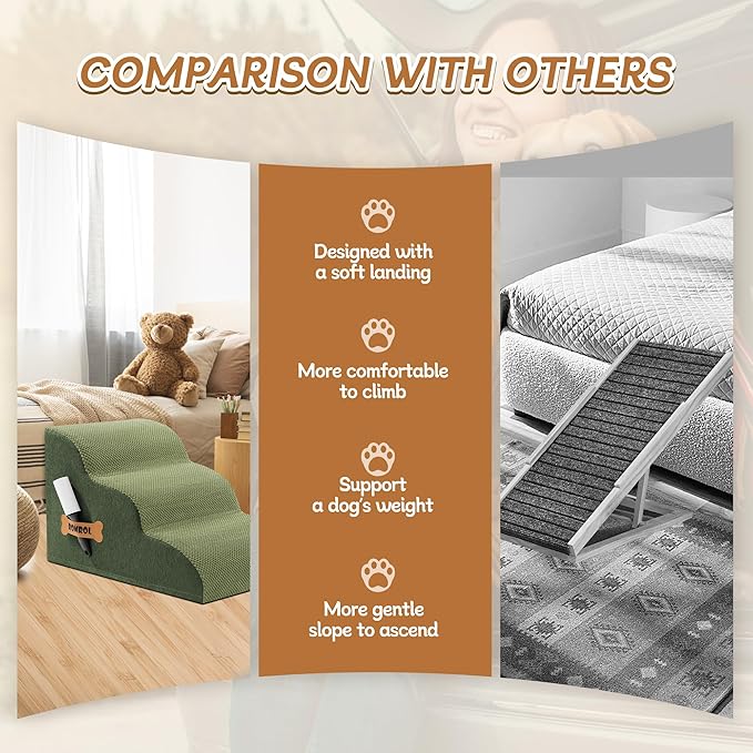 - 33D REBOUND HIGH-DENSITY FOAM: Our 33D foam delivers 63% faster rebound vs standard foam with enhanced weight capacity. Perfect for puppies, senior dogs, and pets recovering from surgery to access beds/couches safely. Dual-purpose as cat stairs for multi-pet households