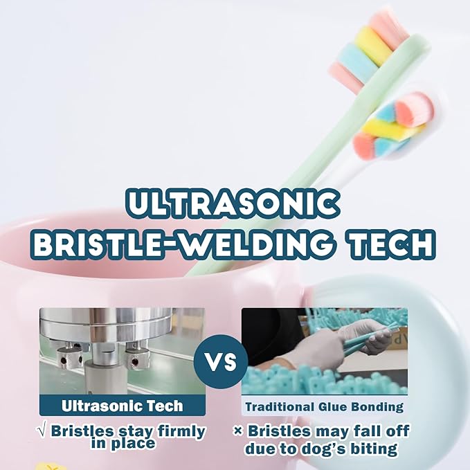 - Ultra Soft: Using upgraded soft toothbrush technology, nearly 10,000 micro fine bristles that are thinner than normal soft bristles, the thicknesses of which are around 120μm, perfect for pets who are new to brushing or have sensitive teeth, this dog tooth brush delivers a swift yet thorough clean, making oral care a breeze, your pet will love the gentle touch!