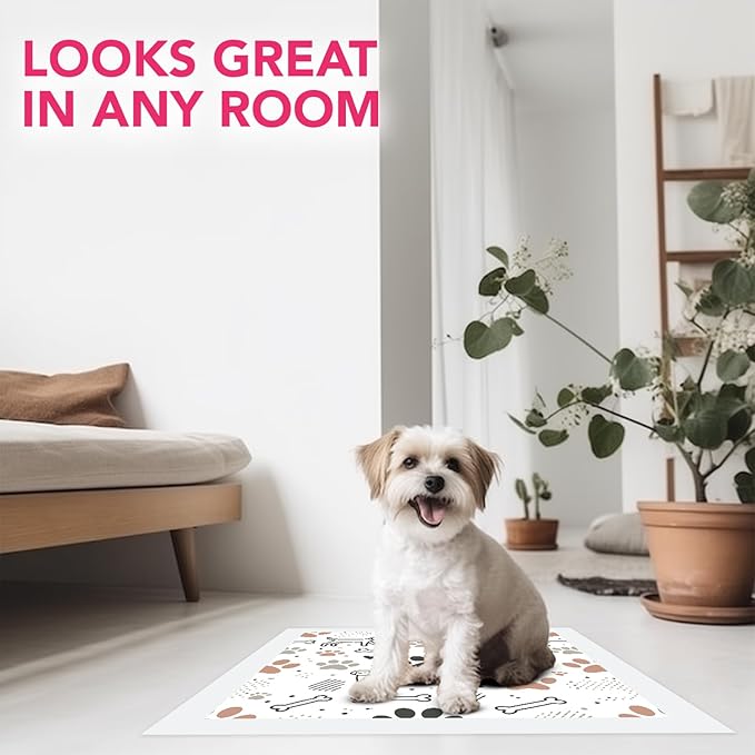 - Disposable Dog Pee Pads with Modern Look - Pupiboo disposable dog training pads feature a clean, neutral print that blends into your home, offering a more attractive alternative to bright blue or clinical-looking pads. Ideal for pet parents who want a stylish solution for indoor potty training, crate use, or apartment living with puppies or small dogs.