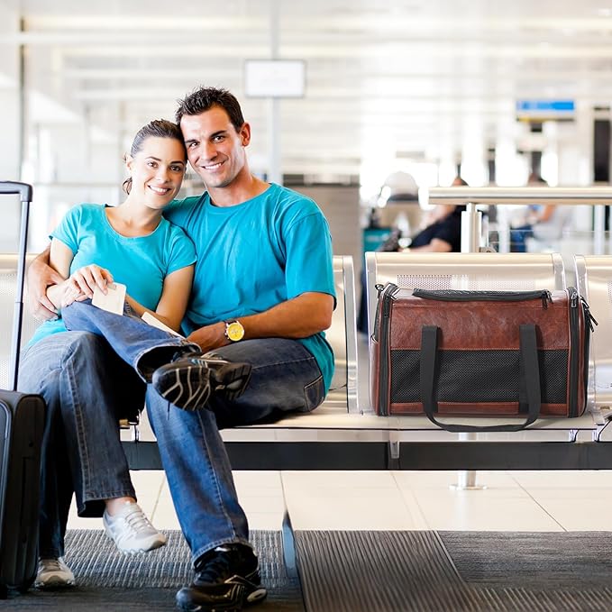 Fashion Leather Dog Carrier, Airline Approved Cat Carrier Soft Sided Pet Bag Carrier Purse for Puppy Kitten Small Animals Coffee