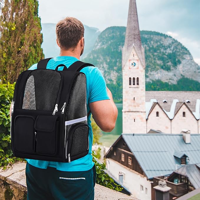 Pet Backpack, Airline Approved Dog Backpack, Cat Bag for Travel Hiking Bike Riding Walking Outdoor, Cat Backpack with Breathable Mesh(Black)