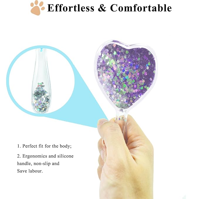 Small Dog Brush, Soft Brush for Shih Tzus, Yorkies, Maltipoos, Maltese, Love Shape Puppy Massaging Hair Comb for Small Dogs Cats Rabbits of All Hair Types (Glitter Purple)