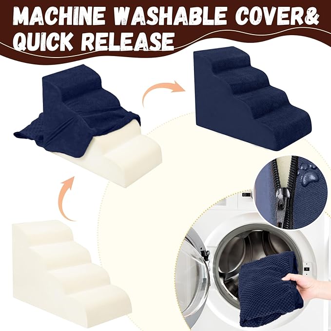 - Double Sided Anti Slip: The dog steps cover is made of corduroy with greater friction than other fabrics, which provides extra grip while in use, the bottom features nonslip rubber dots, preventing pets from sliding while climbing, providing pets with double safety protection