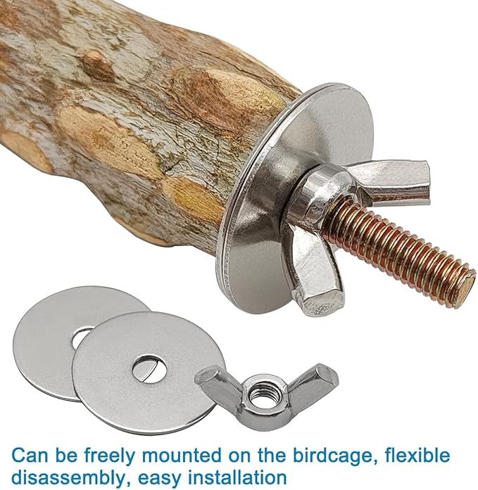 - Easy installation: These bird cage perches are equipped with a metal butterfly nut and built-in bolt, making it easy to securely fix them in the birdcage without the need for other tools, and can be placed anywhere in the cage.