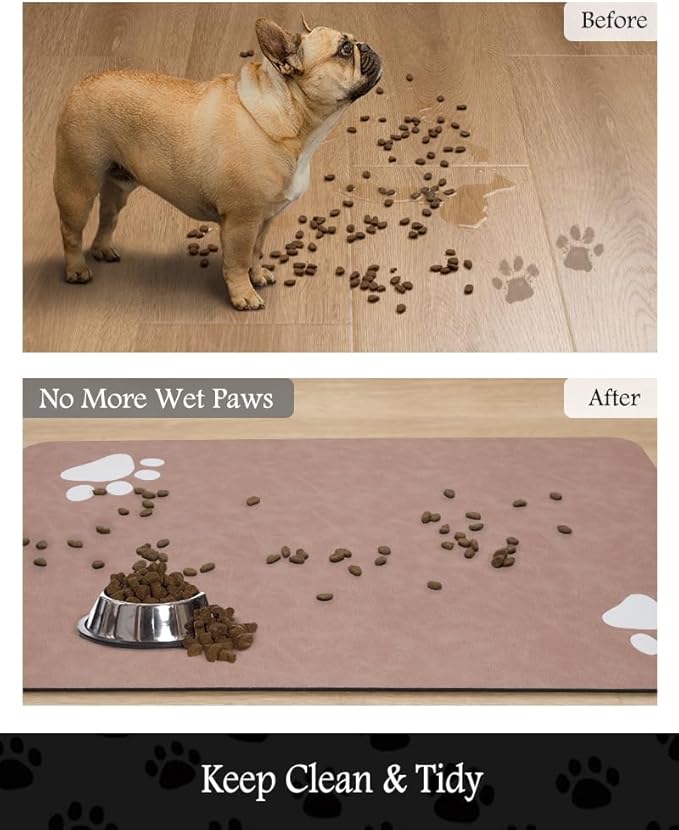 Pet Feeding Mat-Absorbent Dog Mat for Food and Water Bowl-No Stains Quick Dry Water Dispenser Mat-Dog Accessories Pet Supplies-Bowl for Messy Drinkers(Dusty Pink,17"x34"