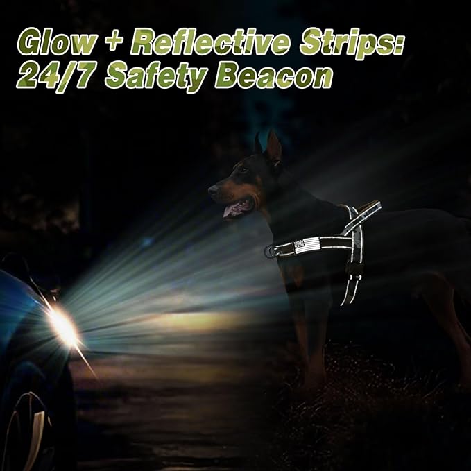 - Reflective Safety: Equipped with reflective strips, the no pull dog harness enhances pet safety during nighttime walks.Large O-ring,quick release buckle and soft padded handle all provide great help for you during daily walking or training exercises