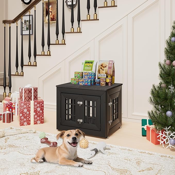 - 【Dog Crate End Table】This dog crate furniture not only provides a safe and cozy shelter for your dog but can also be used as a side table, end table, and nightstand. The wide sturdy top can hold pet supplies, photo albums, and potted plants,suitable for various decoration styles, adding a stylish touch to your home decor.