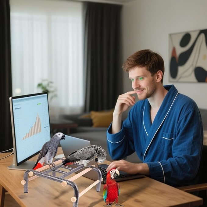 - MATERIAL QUALITY: Metal frames are more stable and last for long to stand on the table. Smooth-finished wood construction ensures splinter-free surface for delicate bird's feet, the metal ladder provides better resting away from the ground.