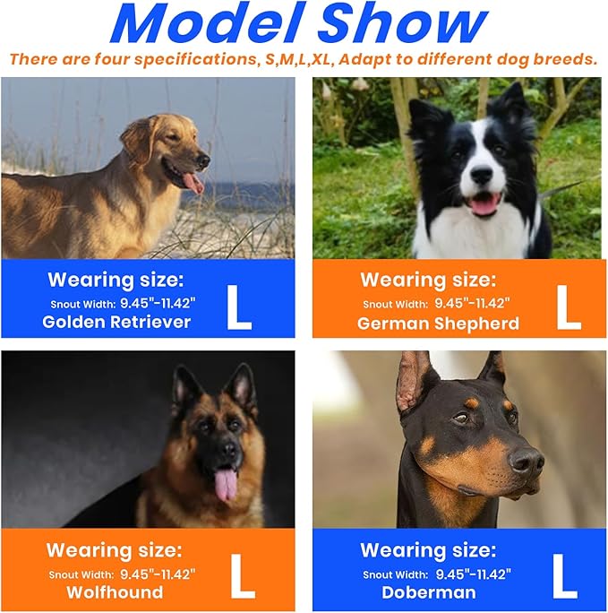 - PLEASE MEASURE BEFORE BUYING:Measure both snout circumference and snout length before purchasing. If your dog's snout length exceeds the size range by about 1 inch, choose the next size up. For long-snout breeds like Dobermans, make sure the snout length fits as well.