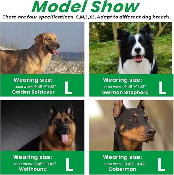 - PLEASE MEASURE BEFORE BUYING:Measure both snout circumference and snout length before purchasing. If your dog's snout length exceeds the size range by about 1 inch, choose the next size up. For long-snout breeds like Dobermans, make sure the snout length fits as well.