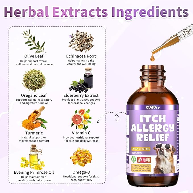 - Easy to Use – Food Topper or Oral Drops: Simply add the allergy drops to your dog's food, treats, or administer directly by mouth. Designed for daily use to provide consistent support for your pet's wellness.