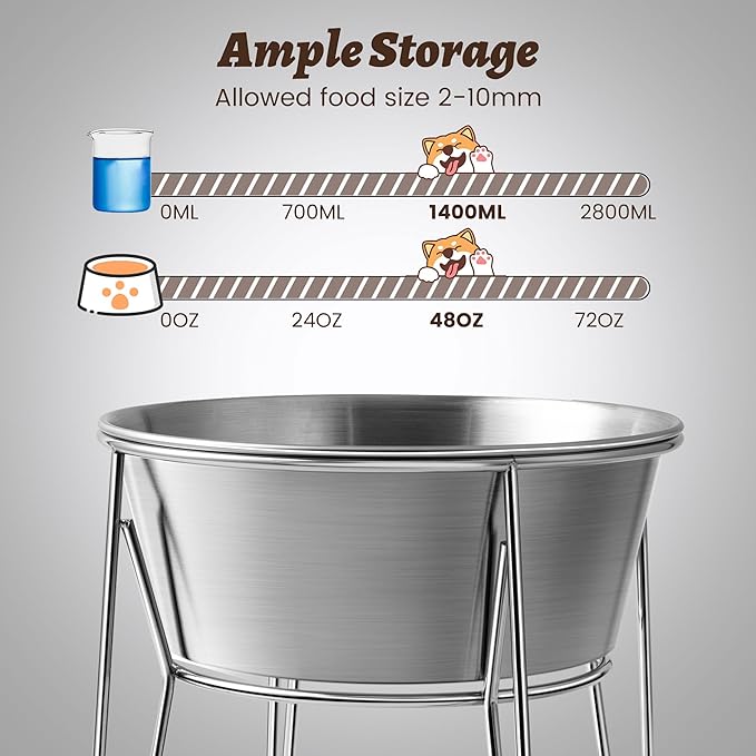 - Stable & Elevated Design : The 6.3-inch stainless steel stand promotes better posture during meals, reducing strain on your dog’s neck and joints while preventing spills.
