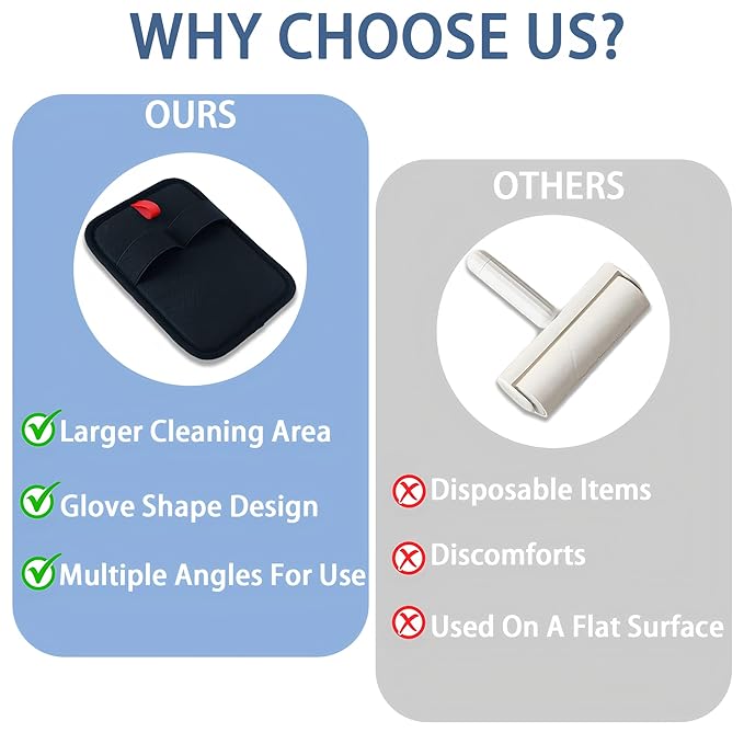 - 【Efficient Pet Hair Removal】The pet hair removal glove uses static electricity and a unique design to effortlessly collect pet fur. Clean larger surfaces in less time. Just glide your hand and watch the hair collect in seconds. Ideal for busy pet parents