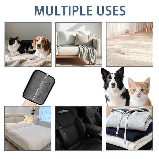 - 【Perfect for Every Pet Owner】Whether you have a cat, dog, or both, this electrostatic pet hair remover is ideal for everyday use. It works great on all types of pets and can easily clean all the hard-to-reach areas like furniture cracks and upholstery gaps