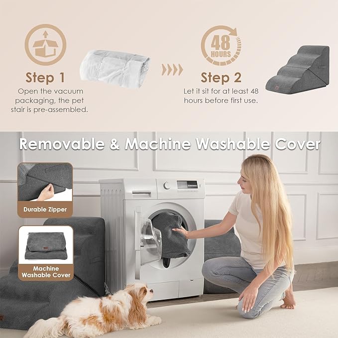 - EASY TO CLEAN - The dog step has a removable washable cover made of bonded fleece that can be hand washed or machine washed, so you don't require spending a lot of time cleaning it. It's very convenient.