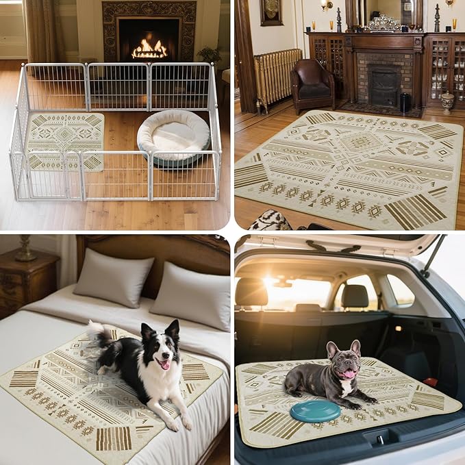 - Super Absorbent: Our dog pad absorbs up to 2L of liquid with a thick, heavyweight cotton layer — perfect as a dog playpen mat to keep your pup’s space clean and dry all day.
