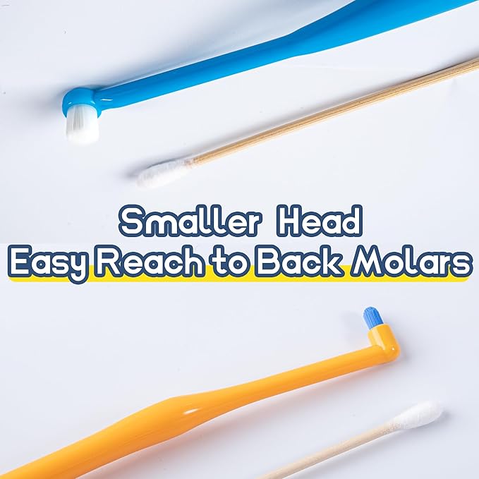 - What You Get - This small dog & cat toothbrush kit includes 3 toothbrushes: 1 soft toothbrush with super soft dense bristles for beginners, 1 tuft head toothbrush for deep detailed dental care, 1 horizontal head toothbrush with medium firm bristles for daily dental care. This design makes it easier for you to clean your pet's teeth, reaching every angle, whether it's the front or the sides