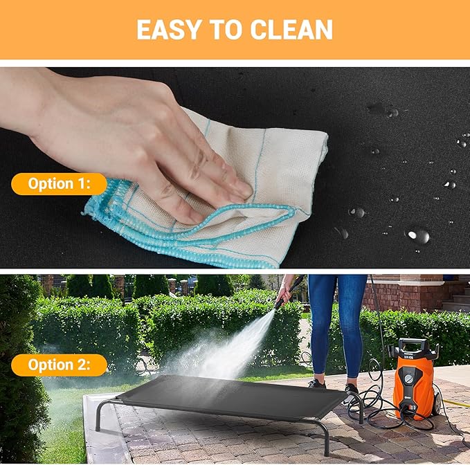 - 【Versatile Indoor & Outdoor Use】This raised dog cot bed is perfect for backyard, patio, porch, poolside, or camping trips. It keeps pets dry and comfortable in any environment.