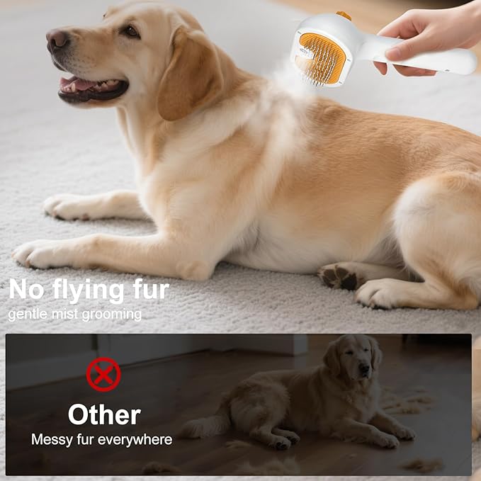 Pet Steam Brush for Dogs and Cats – 3-in-1 Pet Grooming Tool, Spray Portable Design, Suitable for Home and Travel, Ideal for Medium & Long-Haired Pets, Includes 1*Waterless Shampoo, Yellow
